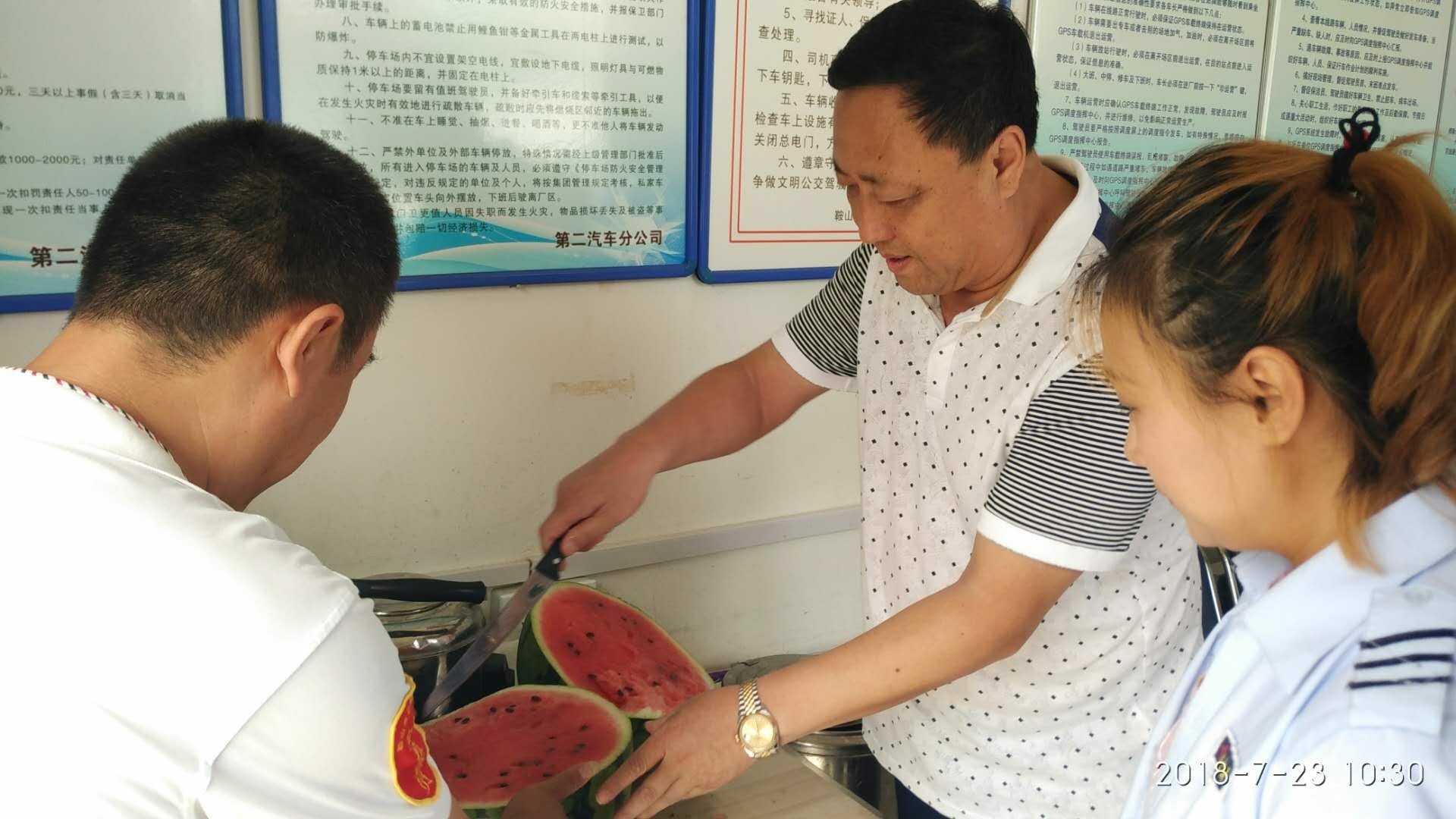 為使交運集團廣大一線職工度過一個安全、健康、衛(wèi)生、清涼的夏季,切實做好暑期安全生產(chǎn)、防暑降溫工作,牢固樹立“服務(wù)一線”意識,入夏以來,交運集團開展了“情系一線職工 平安度夏送清涼”活動。在集團黨委書記、董事長羅玉艷的帶領(lǐng)下,集團領(lǐng)導班子成員和各基層營運公司及路隊黨政領(lǐng)導多次頂著酷暑到一線調(diào)度室慰問在高溫天氣下仍堅守在營運一線的職工,與他們親切交談,叮囑他們要注意身體,注意高溫下的自我調(diào)節(jié),防止高溫中暑,注意安全,杜絕疲勞作業(yè),并親手把西瓜、冰果、冰鎮(zhèn)礦泉水等防暑降溫慰問品送到職工手中,實實在在把集團對他們的關(guān)懷送到了每位職工心中。職工們表示,集團為了給我們駕駛員創(chuàng)造良好的工作環(huán)境,不僅為我們送來防暑降溫物品,還為我們的調(diào)度室配備了空調(diào)、冰箱、飲水機,更新了部分新能源空調(diào)電動車,使我們的工作環(huán)境越來越好,工作起來越來有干勁。在此次送清涼活動中各基層單位根據(jù)自身實際情況,遇高溫天氣時由黨政領(lǐng)導親自帶隊為職工發(fā)放西瓜、冰果、礦泉水等防暑降溫慰問品,并組織維修人員和安全管理人員對各公交場站、車輛安全設(shè)施、調(diào)度室衛(wèi)生等方面進行全面檢查,竭力為堅守在一線的公交駕駛員提供安全、舒適的工作環(huán)境。 “情系一線職工 平安度夏送清涼”活動的開展,激發(fā)了一線職工愛崗敬業(yè)的熱情和工作的積極性,為平安度夏、健康生活、安心工作提供了有力的后勤支持與保障,為企業(yè)健康、平穩(wěn)發(fā)展起到了積極的推動作用。