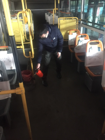 這群公交人是調(diào)度員、是例保員、是修理工、是保潔員,他們都是公交行業(yè)中平凡的一員,但是在疫情面前做著不平凡的工作。在公交停駛時(shí)間,他們默默堅(jiān)守著自己的崗位,奮戰(zhàn)在抗擊疫情的最前線。調(diào)度員每日?qǐng)?jiān)守在調(diào)度室,解答過(guò)往乘客的問(wèn)詢(xún),還承擔(dān)起對(duì)調(diào)度室和駕駛員休息室每日進(jìn)消毒工作。例保員每天到崗檢查停駛車(chē)輛狀況,完成對(duì)停駛車(chē)輛的能源補(bǔ)給,做好車(chē)輛養(yǎng)護(hù)工作,保證車(chē)輛能夠隨時(shí)上線營(yíng)運(yùn)。保潔人員定期對(duì)車(chē)輛進(jìn)行清潔和消毒工作,保證車(chē)內(nèi)外衛(wèi)生。修理工則利用車(chē)輛停駛的這段時(shí)間,加班加點(diǎn)對(duì)故障車(chē)輛進(jìn)行維修維護(hù)。