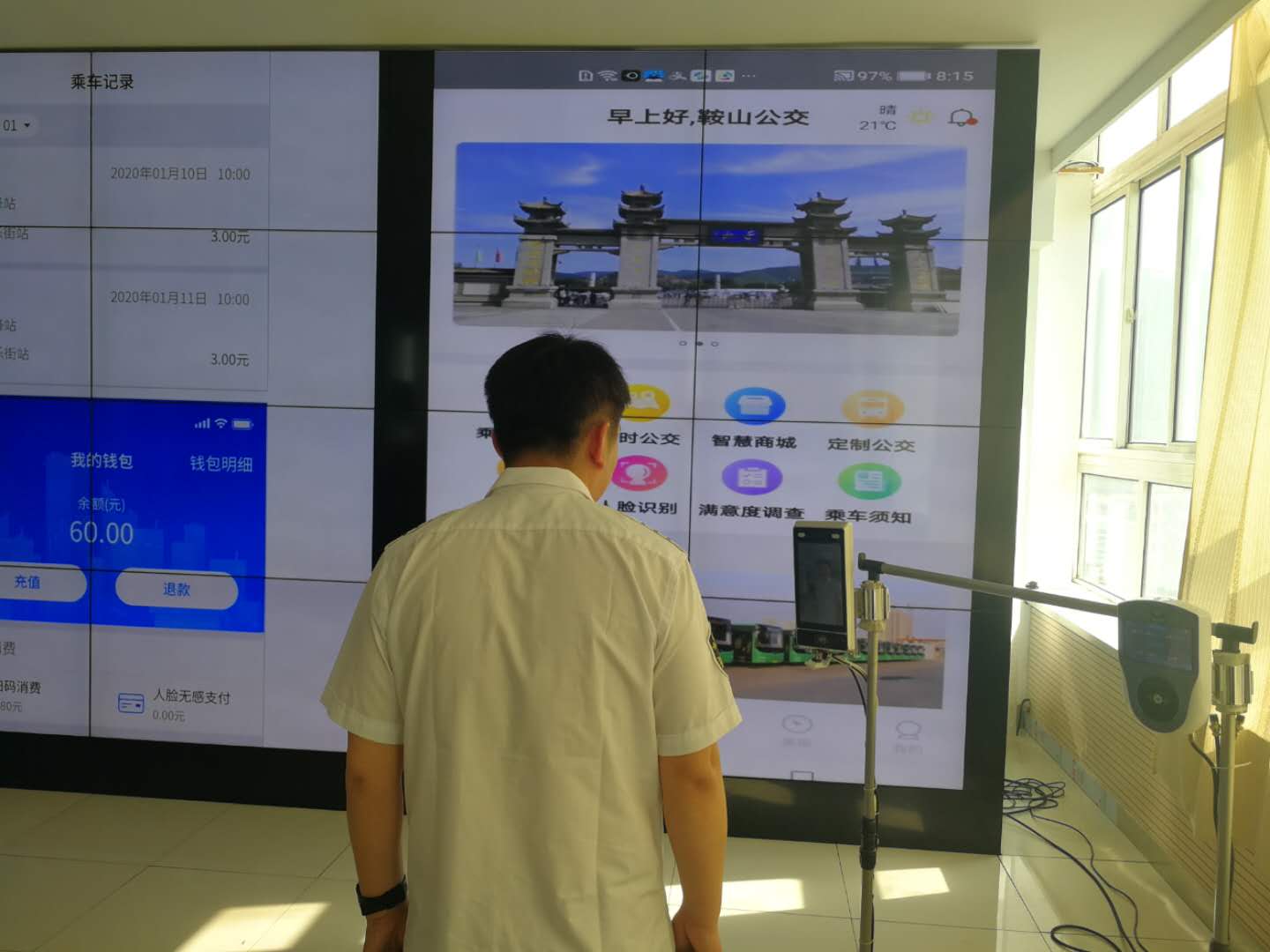 隨著全市“公交都市”創(chuàng)建工作穩(wěn)步推進(jìn),鞍山交運(yùn)集團(tuán)推出智慧公交APP平臺,使鞍山市成為全省首個擁有集線上營業(yè)廳、掃碼乘車、線路查詢、定制公交,滿意度調(diào)查、尋物啟事、智慧商城、人臉識別等8項(xiàng)功能于一體智能乘車系統(tǒng)的城市。實(shí)現(xiàn)普通IC卡與智慧公交APP自由高效并行,引領(lǐng)全省公交行業(yè)智慧發(fā)展,使鞍山公交智能化水平躋身全國先進(jìn)行列。此APP電子公交卡與普通公交卡享受同等優(yōu)惠,普通卡押金20元可以退還,電子卡開卡費(fèi)用10元,不予退款,乘客可自由選擇。
