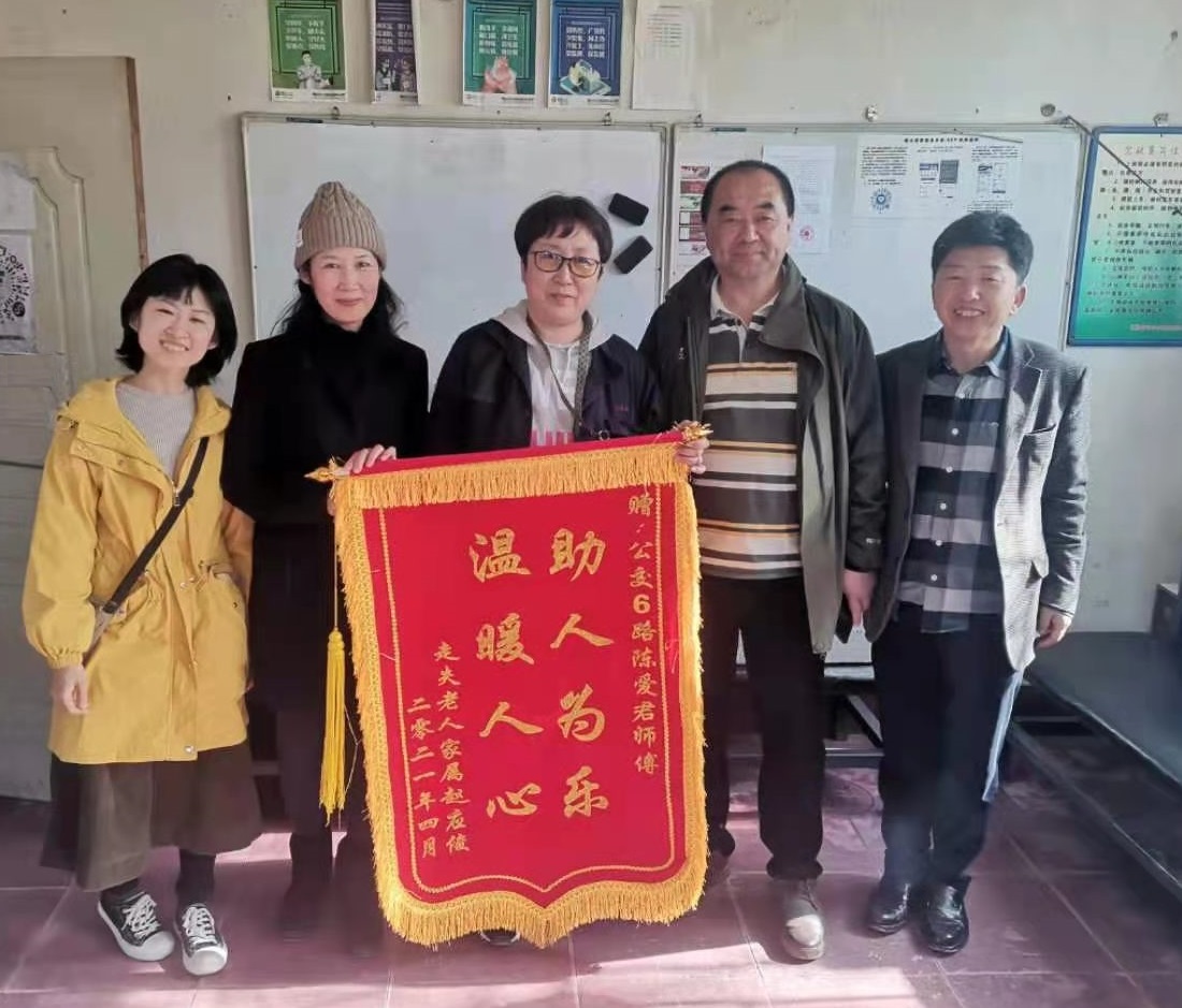 14日下午,老人家屬來(lái)到市交運(yùn)集團(tuán)第三汽車分公司客運(yùn)八隊(duì)調(diào)度室,為陳愛(ài)軍送上錦旗,表達(dá)謝意。據(jù)家屬介紹,老人患小腦萎縮多年,那天出門后就不知道家在哪里了,老人的家屬一再向陳愛(ài)軍師傅表示感謝:“多虧有你熱心幫助,謝謝!謝謝!”
